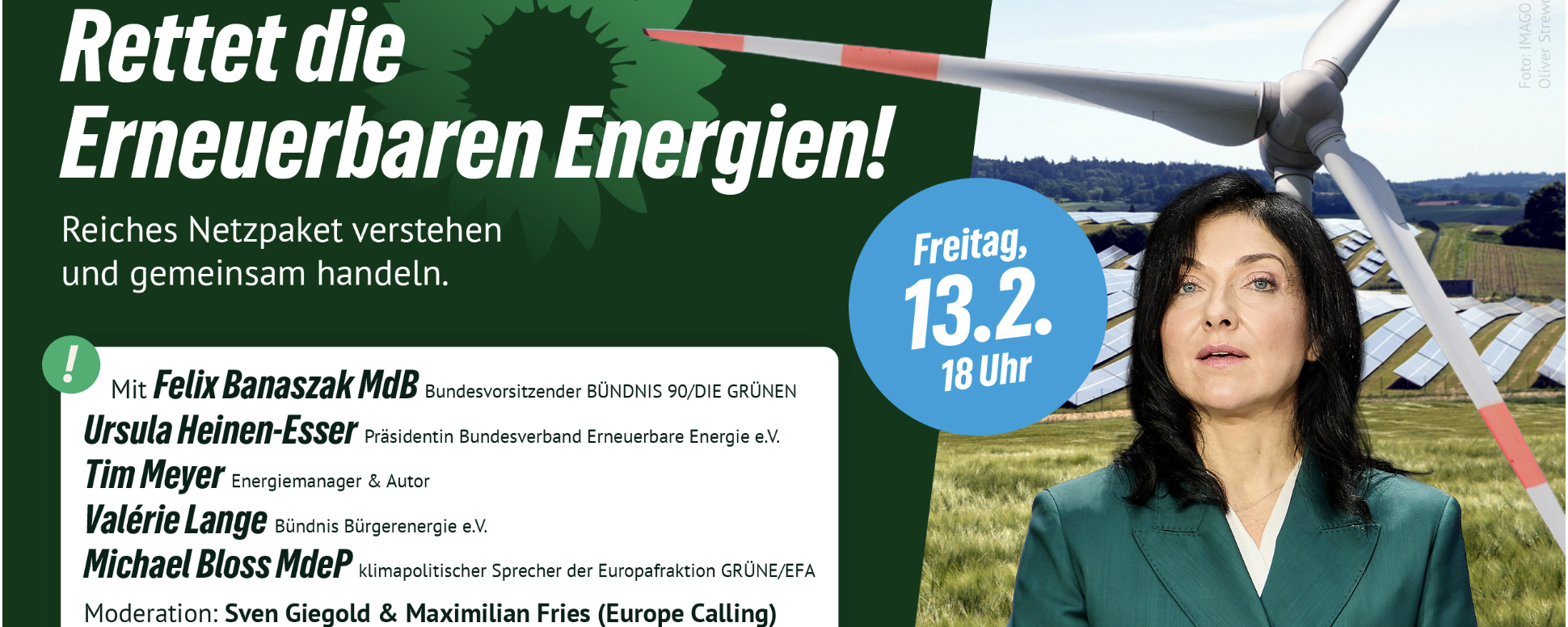 Europe Calling Eil-Webinar “Rettet die Erneuerbaren! Reiches Netzpaket verstehen und gemeinsam handeln.” – Fr, 13.2., 18:00 Uhr